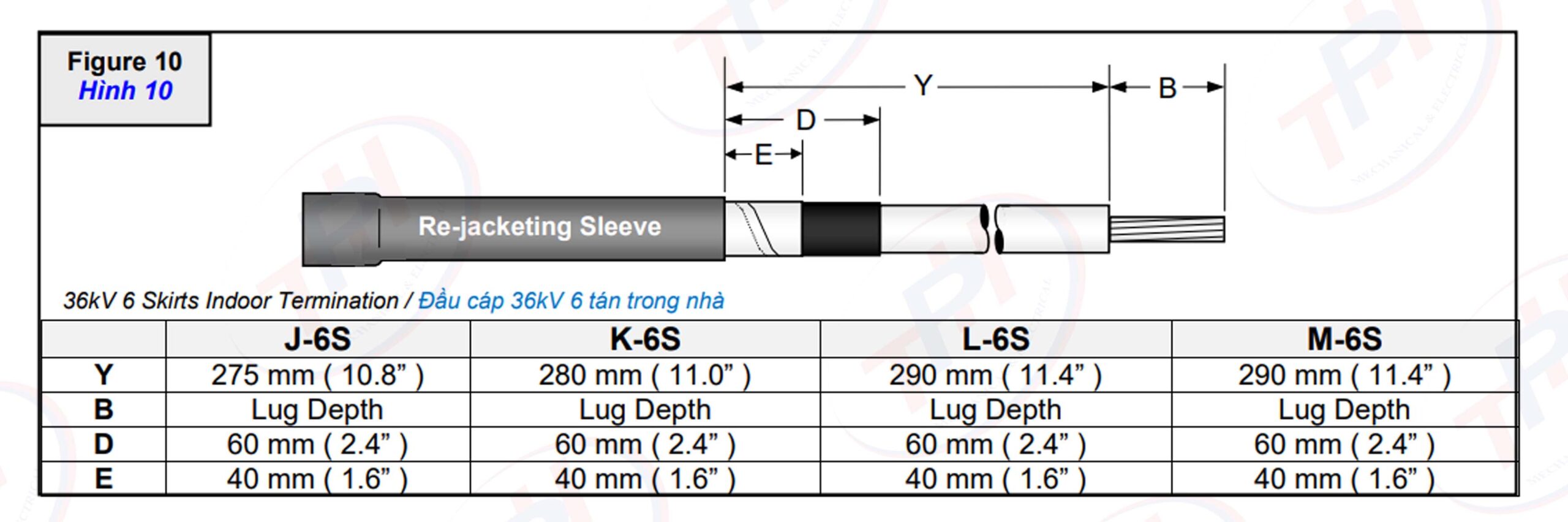 Chuẩn bị từng pha cáp theo kích thước ở Hình 10.